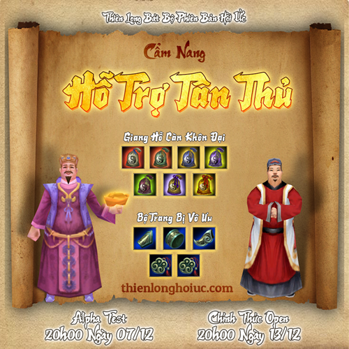 -Khi tạo nhân vật, trong tay nải sẽ có Giang Hồ Càn Khôn Đại, mở Giang Hồ Càn Khôn Đại theo các cấp sẽ nhận được phần thưởng hấp dẫn.
