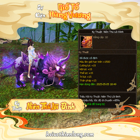 - Sử dụng 500 Bánh Chưng sẽ nhận được 300 Thiên Cang Cường Hóa Tinh Hoa (Cố định), 1 cặp Trân Thú: An Kỳ Nhi (Cấp 95, loại hình Thể Lực).
