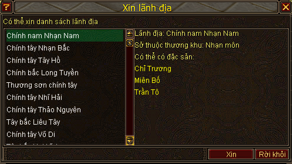 • Đăng ký lãnh địa cần tiêu tốn 1000 Vàng/Giao Tử hoặc 1 Kiến Thành Lệnh Bài.